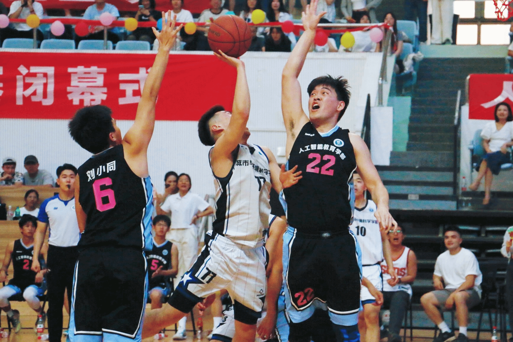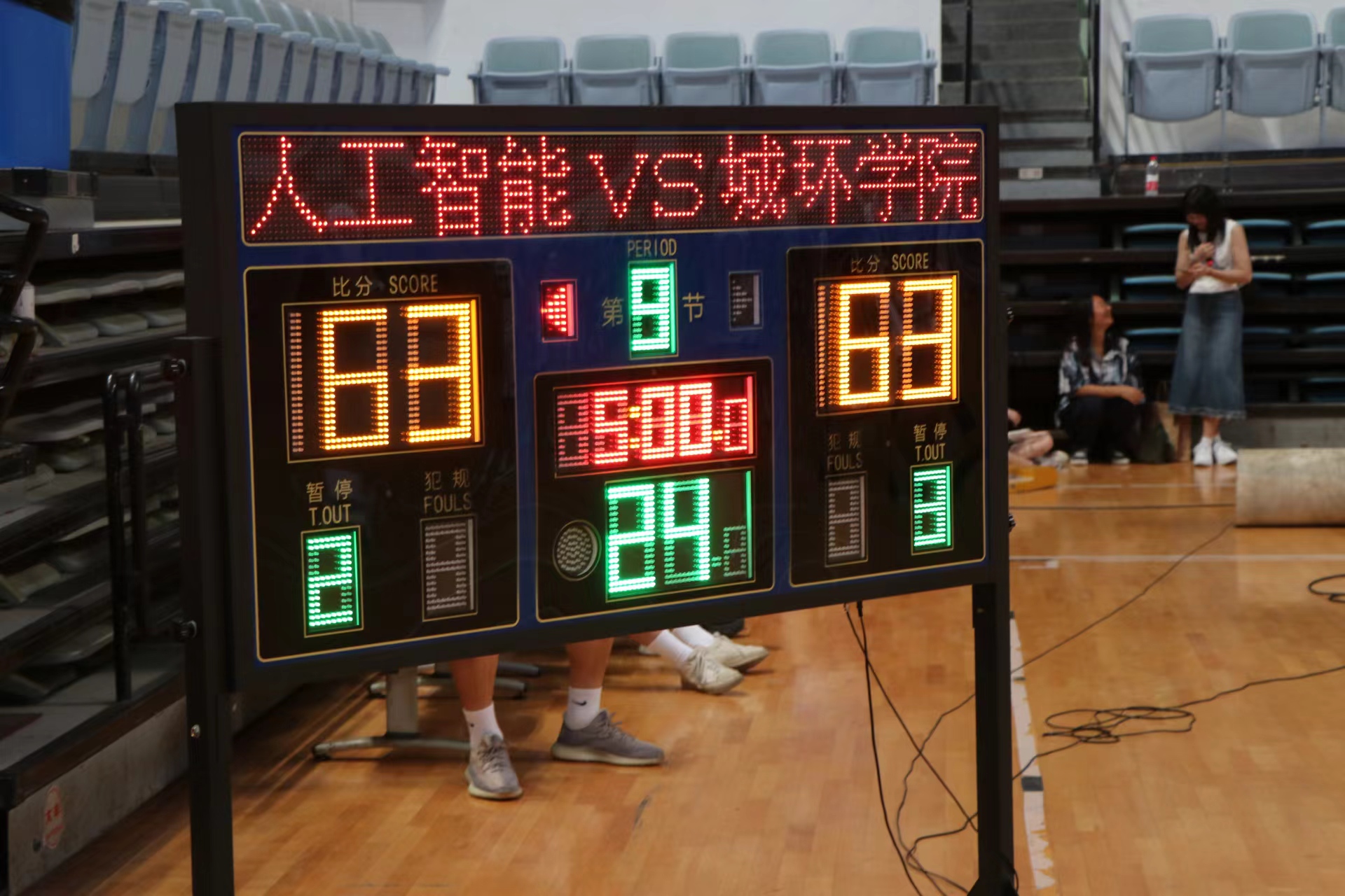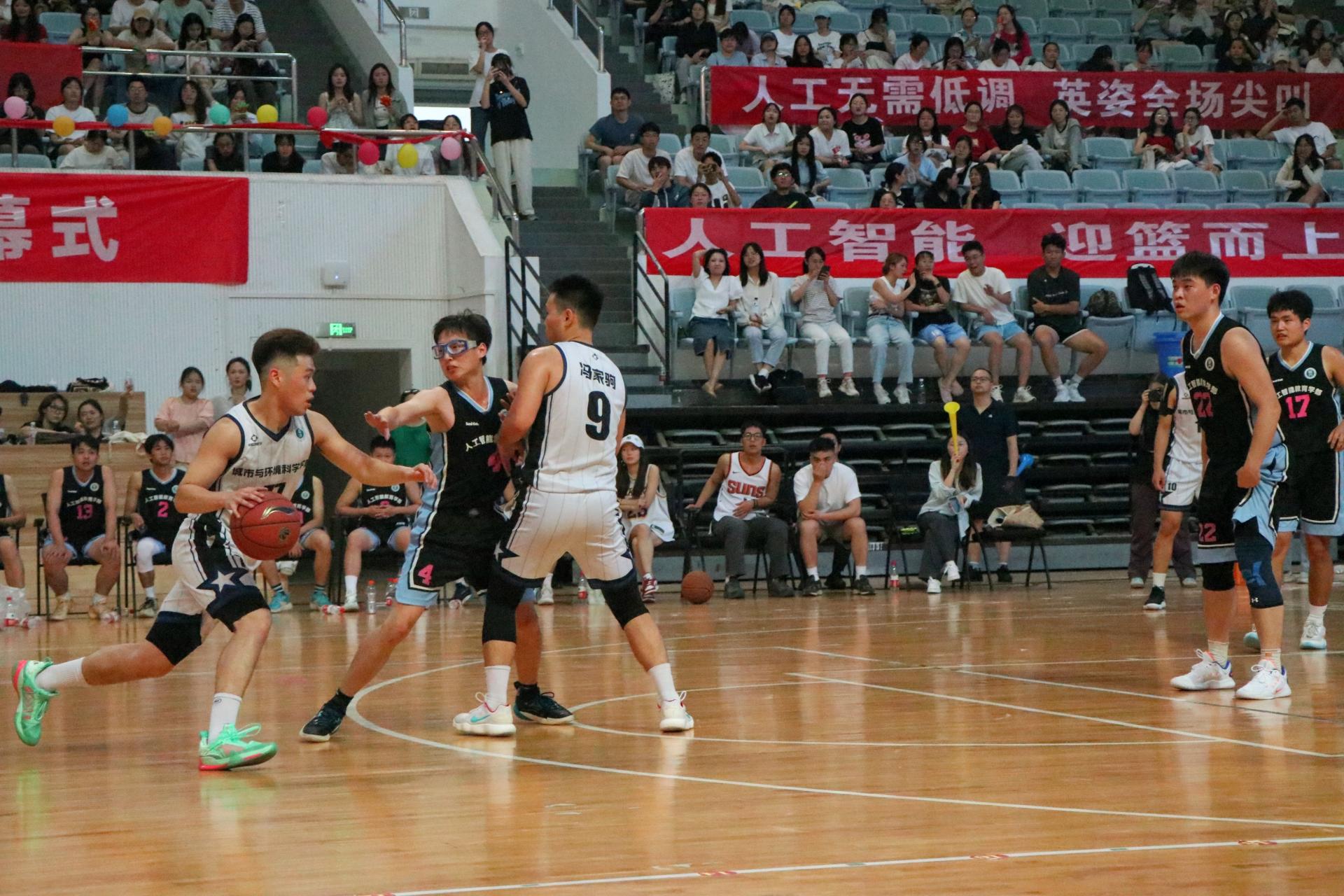 第二节比赛结束后,双方交换场地,经过短暂的休息,第三节比赛开始,吕天琦率先攻入该节的第一球。经过一次漂亮的传球,兰晓康顺利接球,一气呵成地上篮拿下2分。随后,人工智能男篮积极调整状态,连连上篮缩小比分差距,比分定格在53:50,我院继续保持3分优势领先。