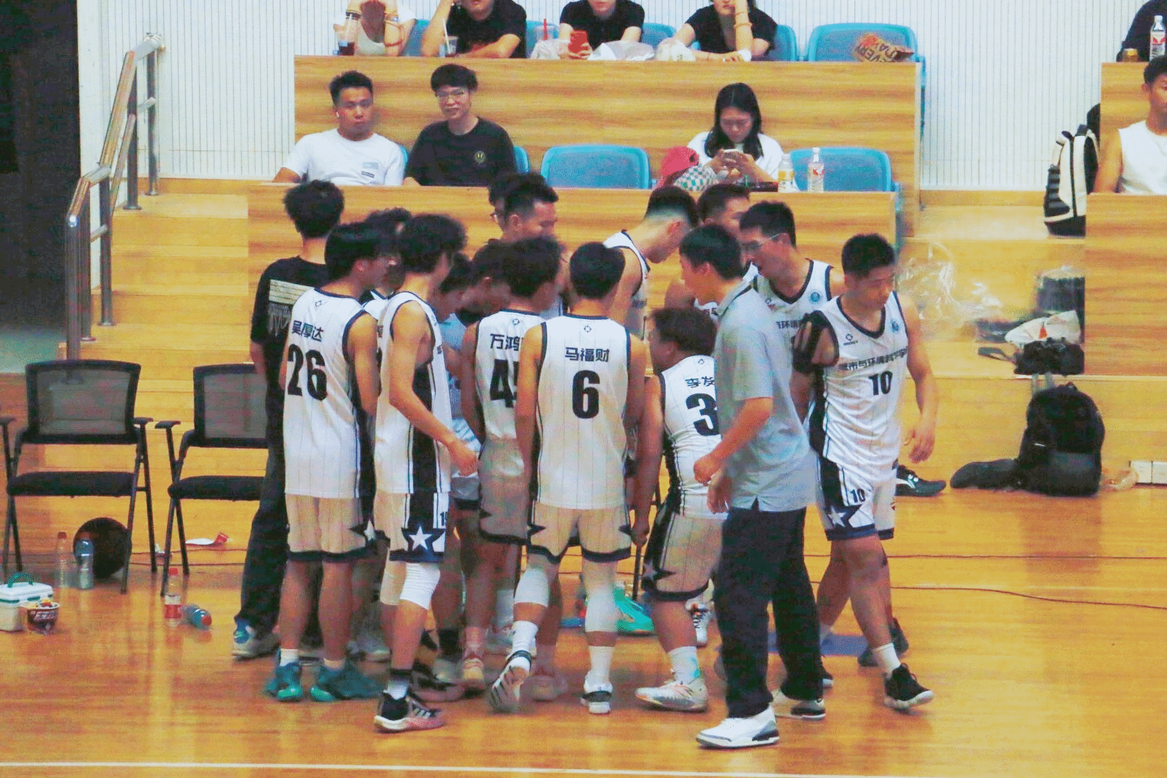 节间休息时,教练为队员们分析赛场情况,队员们积极沟通,互相打气,为后续的比赛调整状态。