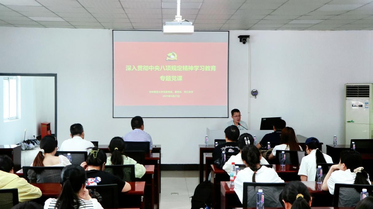 6月27日下午,校党委常委、副校长刘三女牙在城环学院报告厅讲授深入贯彻中央八项规定精神学习教育专题党课,城环学院教工和研究生党支部、化学学院本科生红石榴党支部党员代表参加,党课由城环学院党委书记吴成峡主持。