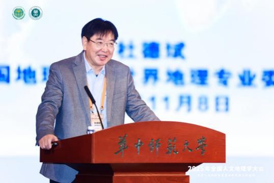 大会报告环节,北京师范大学宋长青教授,华东师范大学杜德斌教授,北京大学柴彦威教授,华南师范大学刘云刚教授,我校城市与环境科学学院敖荣军教授,南昌大学李汝资教授,广州大学袁振杰教授,中国科学院南京地理与湖泊所王磊研究员,中国科学院地理科学与资源研究所李裕瑞研究员,中国科学院地理科学与资源研究所王介勇研究员,中山大学徐红罡教授,中国科学院地理科学与资源研究所王振波研究员,武汉大学王少剑教授,福建师范大学林李月教授,河南大学董冠鹏教授,北京大学朱晟君研究员,中国科学院地理科学与资源研究所宋周莺研究员,北京大学林坚教授先后以“中国人文地理学的学科使命与挑战”“百年变局与世界地理学科的复兴”“中国行为地理学发展与展望”“政治地理学学科进展与发展设想”“包容奋进、固本创新——华中师范大学地理学科发展回顾”“中国城市化进程中的经济社会发展全面绿色转型”“基础设施与地方发展”“高铁交通与国土空间治理”“乡村转型机理与建设模式”“农业地理工程的实践需求导向与研创案例解析”“‘旅游地理自主知识体系建设’进展、成效和展望”“地标生境新质生产力助力两山转化和制度型开放的实践”“迈向碳中和:中国城市碳排放的时空演进与达峰模拟”“跨地区生计与中国人口迁移流动转变”“深度时空统计建模与区域可持续发展”“全球化与区域发展”“‘一带一路’与贸易地理”“新时代国土空间规划思考”为题作大会报告。中国地理学会副理事长、北京大学贺灿飞教授,商务印书馆原总经理李平,人文地理专业委员会秘书长、北京师范大学房德琳副教授,人文地理专业委员会副主任陈明星研究员,我校城市与环境科学学院朱媛媛教授先后主持大会报告。
