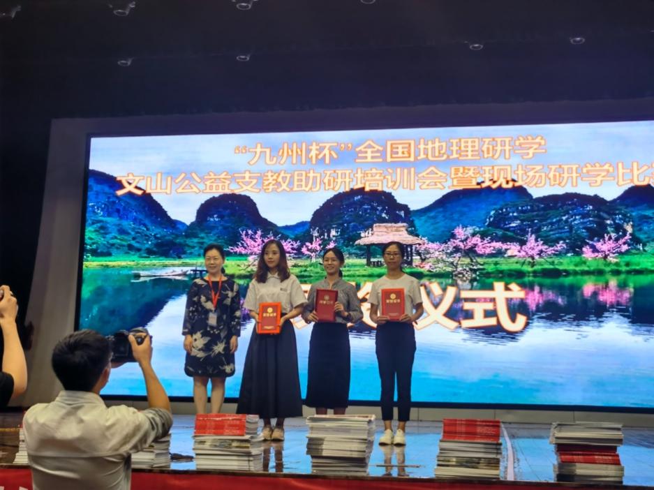 (通讯员:杨会婷,孙源成)2021年7月16日至19日,“九州杯”全国地理研学文山公益支教助研培训会暨现场研学比赛在云南省文山壮族苗族自治州文山学院举行。由2020级硕士研究生余小灵、程健、李坤瀮、杨会婷、许冀豫、孙源成、刘鸣欣、阮秋源,2019级硕士研究生谢瑞淋、李丹丹组成的华中师范大学代表队参与现场研学比赛并荣获一等奖。