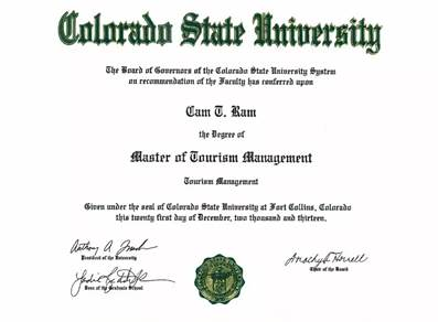 按照华中师范大学和美国科罗拉多州立大学共同制定的培养标准,修满32学分的学生,可获得由美国科罗拉多州立大学颁发的旅游管理硕士学位证书。该学位证书可在教育部留学服务中心官网进行学历学位认证。学位证书及学历学位认证报告样式如下: