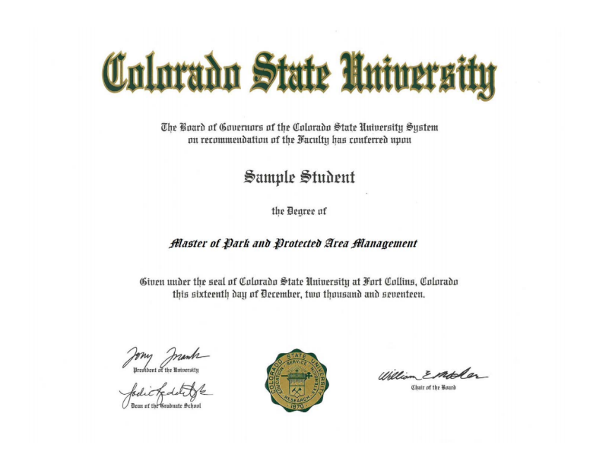 按照华中师范大学和美国科罗拉多州立大学共同制定的培养标准,修满35学分的学生,可获得由美国科罗拉多州立大学颁发的公园与保护地管理硕士学位证书。该学位证书可在教育部留学服务中心官网进行学历学位认证。