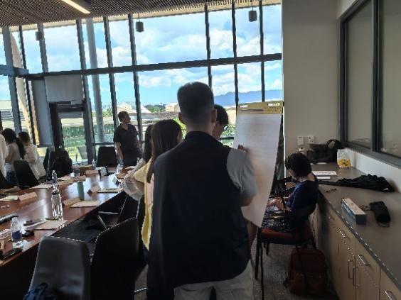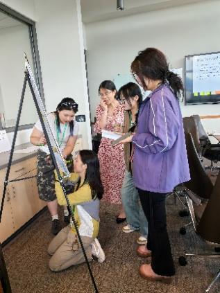 实习首周,CSU的教师团队围绕“自然保护与人文互动”主题,设计了系列专题学习模块,将理论知识与实地场景深度融合。“破冰行动”专题中,在简单介绍参会人员、实习项目的日程安排后,郭田将学生们分为5组,让各组分头到Ecosystem, People, Developing, Planning, Management5个主题词的问题板前,围绕相关主题词查阅资料,展开讨论并写下想法。郭田肯定了学生们的开阔思维,并强调在实习考察中,同学们需要结合野营、国家公园、城市公园等不同生态系统和游憩空间实际仔细考察和不断思考的这5个维度。这一活动设计既让所有同学都参与其中,唤醒在课堂中所学的相关理论知识,也为本次实习考察提出了一条明确的主线。