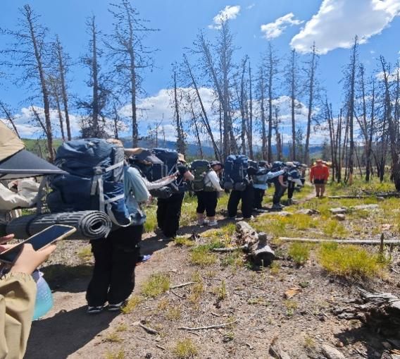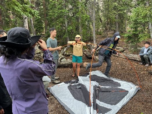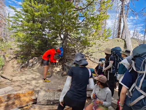 为期3天的荒野生存训练堪称“生理与心理的双重考验”。两组学生分不同时间出发,学习并实践野营背包打包、防熊密封罐使用以及“无痕化”原则要求、野外生存技能等,坐车两小时到达CSU野外学校停车场后,各自背负15公斤装备徒步5公里抵达营地。学生们跟随营地跟随教练Andrew和Jossie学习扎帐篷等各种实用生存技能,包括用过滤壶将可能含有贾第虫等病原体的山泉水转化为饮用水,为了实现“无痕如厕”,学习使用专用降解袋收集排泄物,密封后与其他垃圾一同背下山。