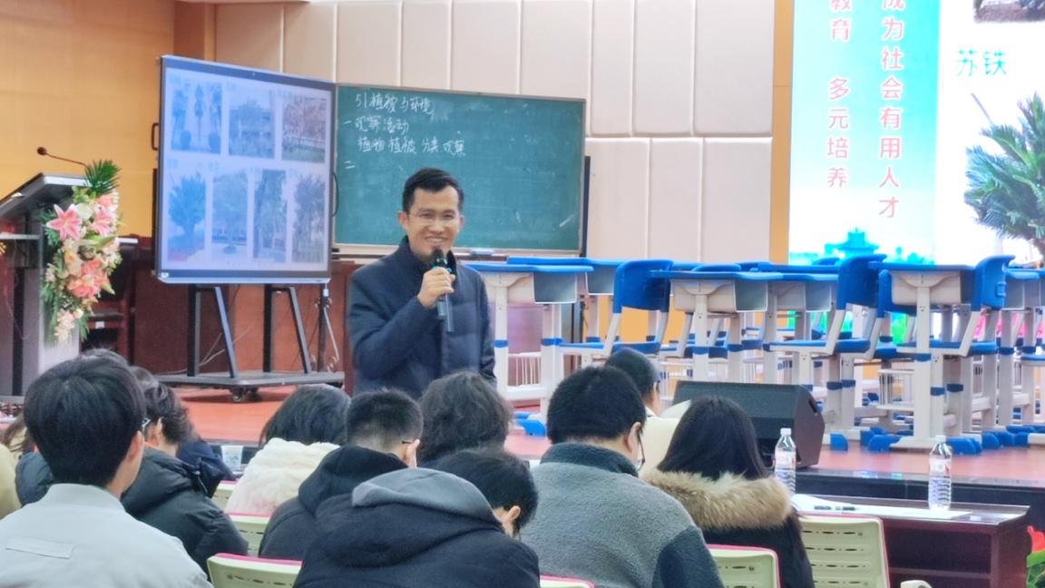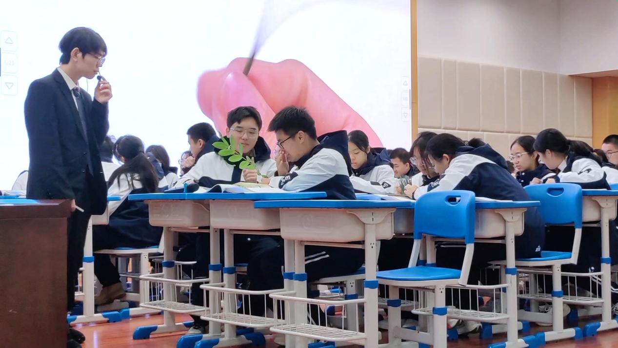 实习生教学汇报环节,实习教师史隆康别具匠心设计《植被与环境》一课,以珞珈山四季植被变化为导入,将植被拟人化,从植被的视觉、温觉和味觉三个角度讲授植被对自然环境的适应性;同时设计“校园植物叶片观察活动”,落实地理实践力核心素养的培养。课堂上同学们踊跃互动,体现了史老师教学设计的精巧、教学方法的得当、教学技艺的进步与成熟。