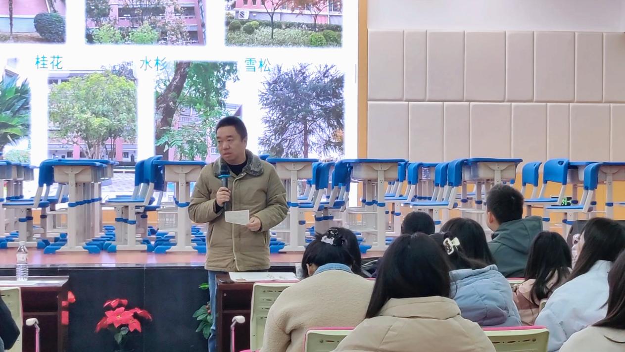 教师评课环节,武大附中教务处主任齐黎明对华中师范大学城环学院师生们的到来表示欢迎,并高度赞扬了本次课程选题所展现出的跨学科融合的创新思维。他强调,在新课改的背景下,围绕“怎样上好一节课”这一核心议题,学校始终致力于探索并弘扬教育家精神的六个内涵,坚定不移地履行立德树人的根本任务,为培养新时代所需的高素质人才贡献力量。武大附中指导老师黄会敏表扬实习教师的信息获取能力非常强,在课堂中体现了乡土地理,同时将地理实践力与综合思维核心素养融合,课程既创新又非常好地落实了课标要求。但是也存在不足之处,比如课堂可以创造更多与学生的互动,创造更多的引导,从而提高学生课堂积极性与活跃性。梅琳老师肯定了实习小组的表现,从课堂的设计、课程内容、教师课堂把控等方面肯定了史隆康同学的努力与武大附中实习小组的团队协作,同时,对教学环节的细节提出建议,如让同学们自由讨论樱花树等,以活跃气氛和思维,促进地理学科核心素养培养和提升。
