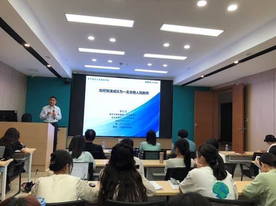 地理科学专业1980级校友、原武汉市第十二中学校长龚红安老师为我院师生带来了题为《如何快速成长为一名合格人民教师》的报告。他从初入职新教师的一般问题入手,详细讲授了“掌握学科合格教师的六项基本规范”“班主任的六种基本素养”、教师发展的“5443”策略等内容,为即将步入教师岗位的毕业生指明了努力的方向。