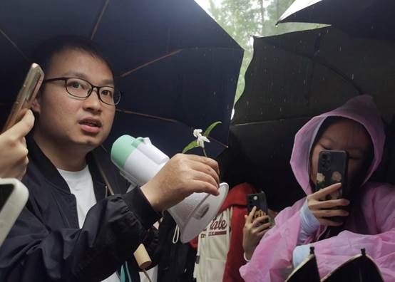 5月21日上午,师生一行到达庐山植物园学习。庐山植物园的彭焱松、唐忠炳两位专家分别带队展开学习,辨认园内各种植物,观察其形态特征,了解其生长习性及利用价值。同学们了解了俗称万寿果的拐枣树、世界仅剩一株野生植株的普陀鹅耳枥、高含油率且具有保健作用的毛叶山桐子、具有清洁效果的皂荚树等等,并深入分析了庐山植物种类丰富背后的地理因素,进一步培养了同学们的综合思维能力。