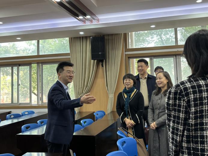 2024年10月29日上午,华中师范大学城市与环境科学学院副院长谢双玉、副书记李志雄、指导老师梅林和肖佳一行人前往武汉大学附属中学看望地理实习小组的同学们,并与武汉大学附属中学领导、地理组的四位老师就实习生培养、专业建设、校本课程开发等问题进行了深入的探讨和交流。