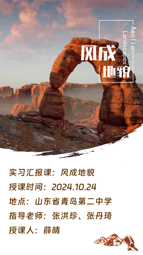 2024年10月上半旬,实习生活已过半,为了及时检验学习成果、助力后期有针对性的提升,青岛实习小分队决定开展阶段性公开课,在指导老师的建议下确定以“风成地貌”为主题进行公开课设计。