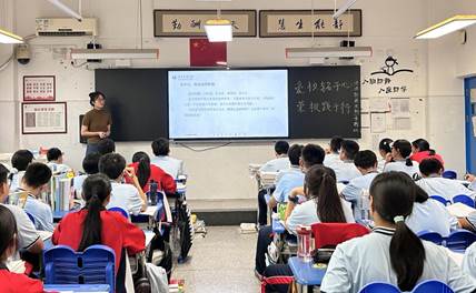 听公开课是实习老师快速成长、提高业务能力的重要过程。实习期间,他们通过数次观摩郑州实高骨干教师的课堂教学学习教学教法(图1),并在课前课后与带教老师和其他老师都保持积极沟通,探索各种教学模式。通过实践和交流,他们积累了教学经验,夯实了专业水平。