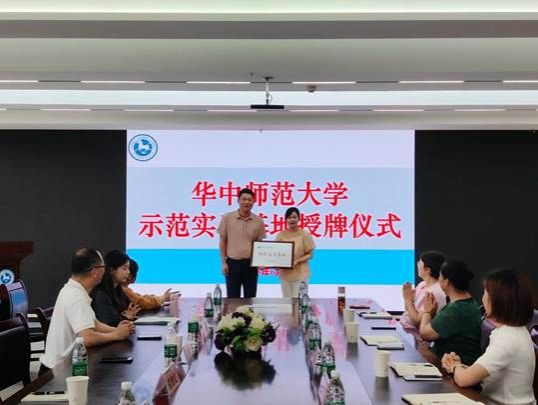 座谈交流结束后,李志雄副书记向蔡沁云校长授“华中师范大学示范实习基地”标牌,标志着双方合作迈入新的阶段。仪式结束后,李志雄副书记代表学院看望了在武汉市旅游学校实习的4位学生,勉励她们高质量完成实习任务。