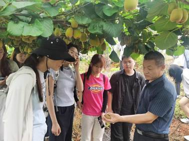 2025年6月24日,2023级人文地理与城乡规划专业全体同学在余瑞林老师和侯纯光老师的带领下,前往浠水县散花镇石牛山村,参观全苑农业猕猴桃种植基地,探寻浠水县以猕猴桃为代表的特色农业发展新态势。