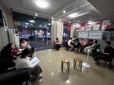 全部实习调研工作结束后,师生在晚间于驻地展开集中研讨,结合座谈与调研情况,围绕明显陵与莫愁村旅游发展与管理的现实与挑战进行交流与讨论,话题从文物保护与旅游开发的边界谈到文化产品策划的实践路径,从景区营造的审美逻辑延伸到消费者心理的深层动因,讨论氛围热烈甚至激烈,不时出现观点碰撞与思维反转。两位指导老师结合自身研究经验,对学生提出的问题给予回应与追问,极大地激发了大家的思辨与表达,帮助学生在实景中验证与挑战课本知识,在交流中不断修正理解路径。历史遗产的静默与乡村旅游的喧腾,在这一天交替出现,也在每一位参与者心中留下了对“文旅融合”更具体而生动的想象空间。