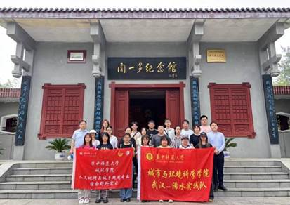 2025年6月26日,2023级人文地理与城乡规划专业全体同学在陈京,陈广平两位老师的带领下,前往浠水南站、浠水站、文庙、一河两岸、浠水文化馆、闻一多纪念馆等地,围绕交通枢纽规划、历史文化遗产保护、地方文化传承等主题,开展了为期一天的沉浸式专业调研与文化研学活动。