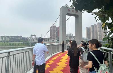 从文庙出来后,沿着河畔步道前行,同学们步行跨越桥梁,全方位饱览“一河两岸”的秀丽风光。波光粼粼的水面与两岸林立的现代建筑、葱郁植被相映成趣,大家在自然与城市景观交融中,体会浠水生态与建设发展的和谐之美。