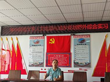 上午11时许,城环学院正处职组织员曹慧东、人文地理与城乡规划系郑文升主任莅临实习现场,看望慰问正在该村实习调研的同学们,并受到了浠水县洗马镇夏家铺村委会谢先单书记和带队老师的热情迎接。随后,曹慧东组织员和郑文升主任在谢先单书记的陪同下,来到夏家铺村党群服务中心二楼会议室与同学们展开座谈交流。谢先单书记首先为同学们详细讲述了夏家铺村的红色革命历史、村庄基础设施建设与产业发展状况,特别介绍了村里正在推进的智慧农业项目,期待同学们未来能重返夏家铺村见证其发展。最后,曹慧东组织员对同学们在本次实习中发扬不怕吃苦的精神表示肯定和赞许,鼓励同学们在实习中做到理论与实践结合,以实践验证专业知识,同时要胸怀家国情怀,将个人发展融入国家发展大局,对同学们提出殷切期望。