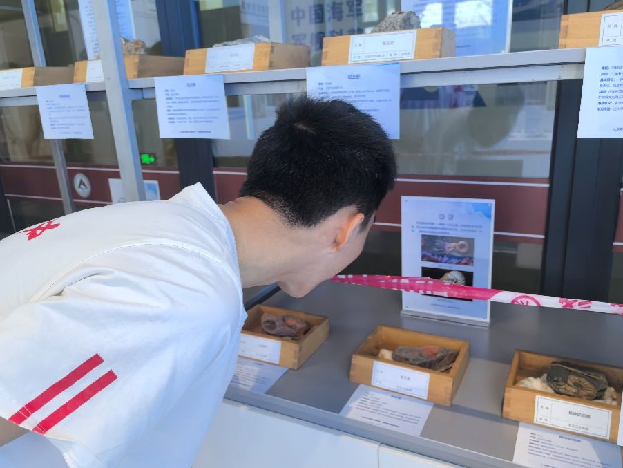 此次开放的实验室集中展示了海洋鱼类、贝类、珊瑚以及多种海洋矿石等珍贵展品,旨在通过直观体验深化学生对海洋的认知,增强国防观念。王甜甜主要负责矿物与海洋地理板块的讲解,成为连接展品与科学知识的重要桥梁。
