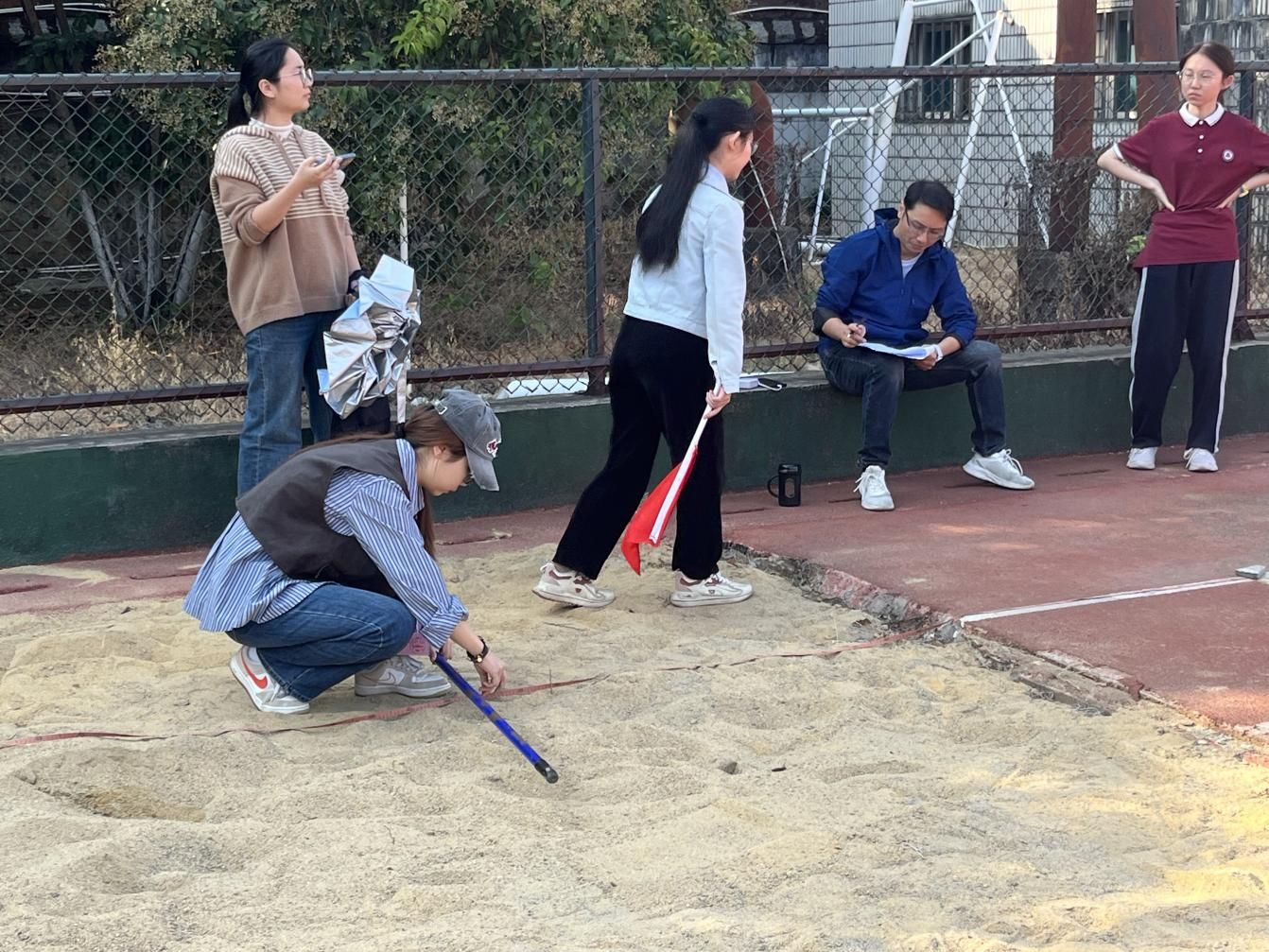 教育的内涵远不止于课堂。10月28日,学校运动会如期举行,王羽茜积极投身其中,担任了跳远项目的裁判助理。她协助主裁判精准测量、维护赛场秩序,在另一个舞台上展现了华中师大学子的责任心与协作精神,也让她更深地融入了校园生活,体会到育人工作的多元与乐趣。