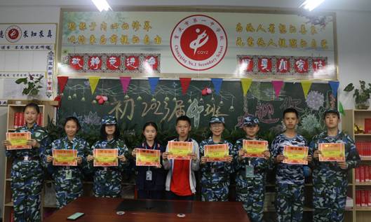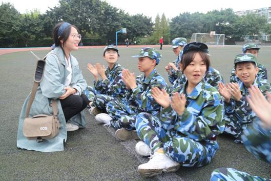 军训结束后,实习队成员冉敏和谷同耀分别对重庆一中寄宿学校初2023届1班与4班的学生就军训情况做了详细的总结,对获得“军训标兵”和“优秀寝室”荣誉的学生进行了表扬,并借此机会开展了关于“团结一心,砥砺奋进”的班级主题教育。谷同耀引用《吕氏春秋》中的“万人操弓,共射一招,招无不中”一句话强调了班级在军训中获得的荣誉是每一位成员共同努力的结果,有效地强化了学生的集体荣誉感。