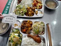 “和我在五中的食堂吃一吃,喔喔~直到吃遍了所有美食还意犹未尽…”五中的食堂可谓是一绝,不论是早晚餐,还是中餐,种类都非常丰富,价格亲民。作为非常能吃辣的小徐老师,甚至是来自广西口味较清淡的小余老师都对五中的食堂赞不绝口。也许再也没有机会能吃到它,但我们时常都会想起,想念早餐的海带豆腐面、三鲜刀削面、桂林米粉、奶黄包…午餐的铁板鸡腿饭、荷叶炒饭、烤肉饭、咖喱鸡排饭、芝士焗饭、酥肉小火锅…晚餐的肠粉、螺蛳粉、金汤挂面、馄饨、酸辣粉…