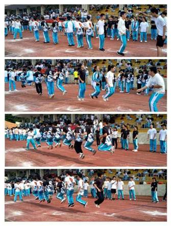 跳绳比赛需要班集体的共同努力和默契配合,王丽薇老师在校运会之前的一个月里,放学后同学们跳绳时经常监督和陪伴,班级最后也取得了运动会集体总分第一名的好成绩,真是功夫不负有心人。