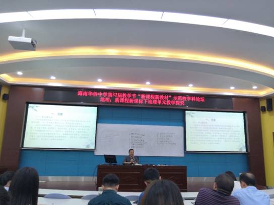 11月25日,海南侨中第32届教学节,主题为新课程新教材,对新课程新课标下地理单元教学探讨。整个活动的环节分为三部分,先是由侨中的郑紫丹和张军两位优秀老师为我们展示在地理单元的背景下,利用此理念来设计的两堂优秀的课,接着是各学校老师的交流和点评,最后是由海南省地理教研员关于单元教学设计基本策略的讲座,整个活动紧凑,干货满满,我们受益颇多。