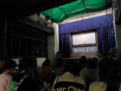 午餐后,同学们迎来了期待已久的非物质文化遗产演艺活动——秭归皮影戏和“县太爷断案”等特色表演。皮影戏剧场里,配合着时而激昂,时而低沉的鼓点声,两具皮影身骑骏马,手持兵器开展了一场殊死搏斗,引起了观众的阵阵惊呼。表演结束后,同学们意犹未尽。随后同学们就演出的优缺点展开了讨论,并从剧情提要、舞台布置等方面提出了改进建议。