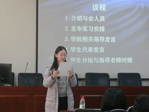 随后,辅导员卢雯再次强调了安全防疫情况,并督促同学们在寒假期间再次思考未来规划。然后学生代表杨芊宣读了《实习生责任与义务承诺书》,代表全班同学对实习期间的相关事项作出了庄严的承诺。