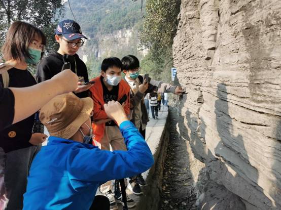 下午,城环学院2019级宜昌野外实习队前往三峡大瀑布旅游景区。被誉为“中国十大名瀑”之一的三峡大瀑布,是展示震旦纪、奥陶纪、寒武纪等多个地质年代的天然地质博物馆,也是世界上少有的集峡谷、溶洞、山水、化石文化为一体的国家级地质公园。