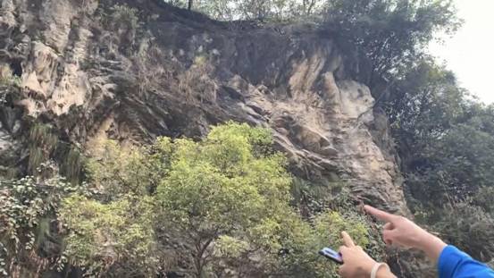 在下一个实习点,李硕为队员们讲解了震旦纪牵引褶皱与走向断层,构造运动使得上盘上移、下盘下移,形成逆断层。队员们对该现象进行了积极思考和提问,老师也耐心地一一解答。
