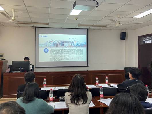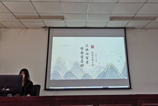 会议第三项是各个小组汇报自己的实习成果,本次宜昌实习全班同学共分为四组,分别是资源组、游客组、企业组和居民组。资源组的黄淳同学以“三峡七百里,惟念宜昌时”为主题介绍了她们小组在宜昌调研的旅游资源概况,并制作了精美的视频向大家介绍宜昌的旅游资源。