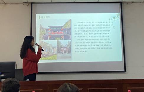 居民组的党洋洋同学以“三峡巴楚文化融,传奇人家民歌颂”为主题介绍了调研发现的旅游发展影响、景区与居民的相处模式、现存问题等,并提出了一定的发展建议。