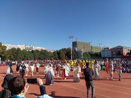 第一天上午,运动会开幕式,同学们以班级为单位,穿着精心准备的服装,在主席台前一展青春风采:有的班级舞龙舞狮,传承中华传统文化;有的班级舞姿翩翩,在欢快得音乐中舒展身姿;有的班级表演绝活,完美得配合迎得阵阵掌声与喝彩…当天下午,还举行了多项体育运动的预赛,在明媚的阳光下,在鲜红的跑道上,少年们舒展身体奋力向前冲刺,赛道旁观众的欢呼声浪此起彼伏,体现出同学们勇敢拼搏、协同一心的体育精神。晚上,师生会聚在操场,通过大屏幕观看《顺子,加油》这部电影,观影中途学校还将电影讲述的原型人物-云南大理籍的长跑健将张德顺女士请到了现场。张女士站在操场中央,给同学们讲述了自己从乡村女孩成长为长跑冠军的故事,鼓励同学们在追求理想的道路上要不畏艰辛,勇敢向前。