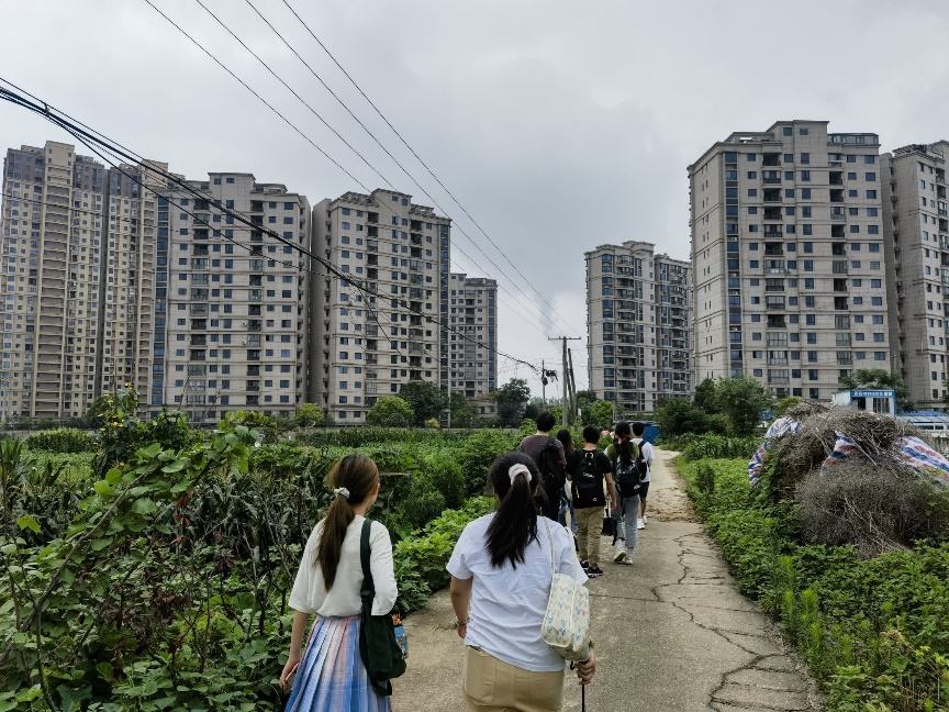 经过中午休整,下午两点半,同学们到达浠水县散花镇的新镇区。到达目的地之后,带队老师为同学们讲述了散花镇新区建设概况,并简要介绍了“武鄂黄黄”区域联合发展战略。之后同学们对新镇区周围基础设施建设、产业布局、人流活动等情况进行了参观考察。