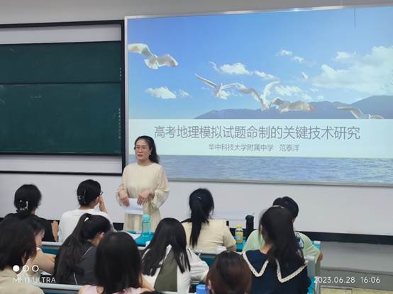 2023年6月28日下午四点整,城市与环境科学学院2020级地理科学专业教育见习之中学教师讲座第二讲于八号楼8106教室开展。本活动邀请到了华中科技大学附属中学范泰洋老师,做了主题为“高考模拟试题命制的关键技术研究”的相关经验分享。城环学院地理科学系主任常珊珊老师主持,2020级地理科学专业全体同学及部分学科教学专业研究生参加。