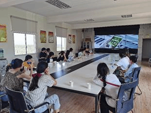 参观完猕猴桃产业园区,众人一同观看了园区宣传片。干总介绍了猕猴桃认种认养模式,该园区在全国最早开创并采取水果产业认种认养模式,采取订单制度销售。介绍之后,同学们就猕猴桃产业生产、销售等疑惑与负责人进行交流,并了解到该产业园区劳动力基本状况。在交流过程中,干总就浠水县农业基本状况,向大家介绍了水果产业和农业龙头产业情况,大家进一步了解到浠水县农业发展新态势。(审稿人:崔家兴)
