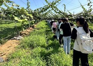 2023年6月27日上午,在崔家兴、余瑞林老师的带领下,城市与环境科学学院2021级人文地理与城乡规划专业学生来到浠水县散花镇现代农业产业园,参观石牛山村猕猴桃生产基地,探寻猕猴桃产业发展新业态。