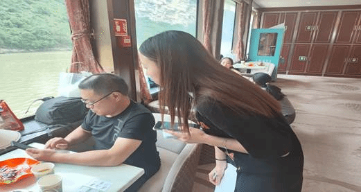 实习队伍早上8点登上了从宜昌港开往三峡大坝的长江9号游船,登船后同学们对游船的一至四层进行了实地考察,对游轮所提供的旅游产品和服务、旅游安全与环境、文创产品设计及体验项目等进行了全面的观察与考察。此外,同学们还结合行前已经确定的实习任务安排,对游轮旅游市场特征及旅游行为进行了观察记录,并应用神秘顾客法方法从游客视角对游船的全流程服务质量进行了体验式考察和记录。