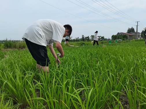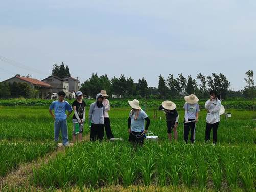 2023年6月29日上午八点,易军老师对本日实习工作进行了介绍,主要涉及对实验田水稻的指标测定以及水样采集,在了解实践内容后,老师和同学们带着实验仪器前往试验田。