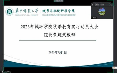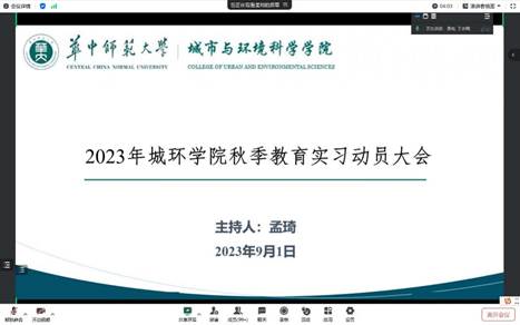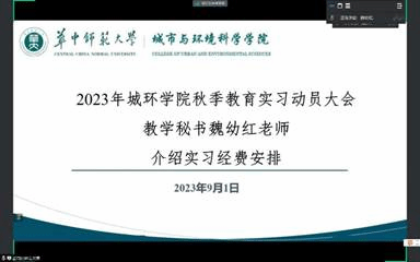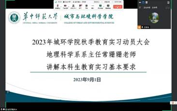 为扎实做好2024届毕业生教育实习工作,进一步促进学生对所学知识和技能进行运用、总结和深化,引导学生明确认识实习的目的和意义,2023年9月1日上午,城市与环境科学学院2023年秋季教育实习动员大会顺利召开。学院敖荣军院长、吴成峡书记、黄建武副院长、刘目兴副院长、饶艳萍副书记、地理科学教研室主任陈实、地理科学系系主任常珊珊、教学秘书魏幼红,本科生教育实习指导教师、研究生教育实习指导教师,2020级地理科学专业本科生、2022级地理学科教学专业硕士研究生参加了此次会议,会议由年级辅导员孟琦老师主持。