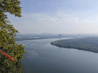 在半山腰中,大家拍摄到了不远处的江心洲。