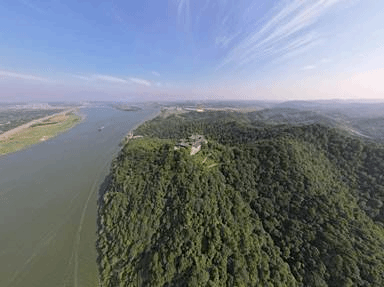 在山顶的观景台,大家拍摄到了非常明显的河湾的凹凸岸。