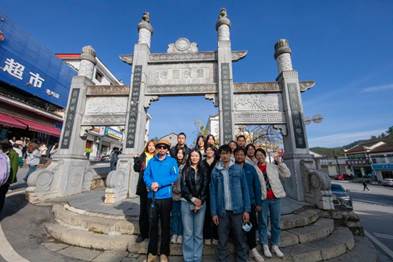 图为部分师生在嫘祖镇合影