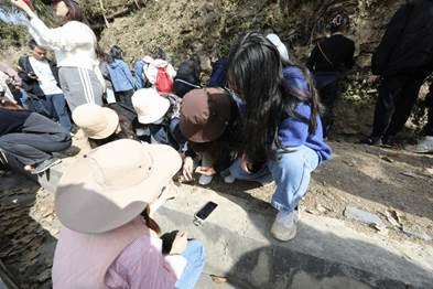 2023年11月18日,2021级地理科学、自然地理与资源环境两个专业185名学生在老师的带领下,前往远安县嫘祖镇和夷陵区分乡镇王家湾村了解古生物化石和奥陶系赫南特阶金钉子。