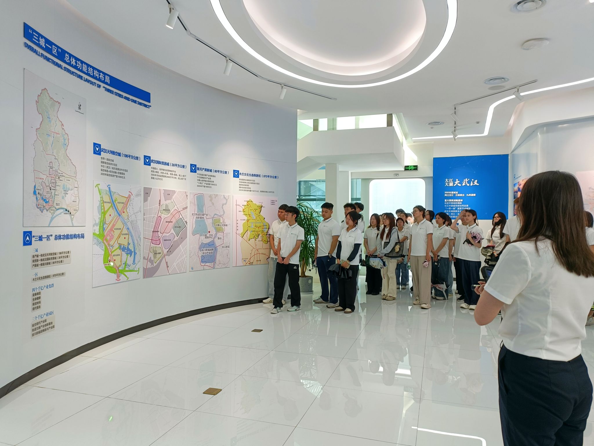 实践队首先走进空港新城展示馆,通过规划展板、数字沙盘等载体,系统学习黄陂"三城一区"功能布局,深入了解交通枢纽构建逻辑与产业集群规划思路,直观把握城市发展战略脉络,深化了对城市规划重要性的认识,为今后学习工作积累了宝贵经验。