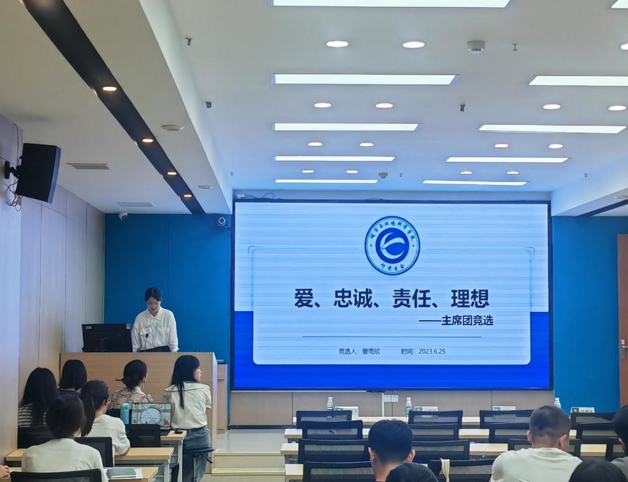 随后,郭志铭、曾雨欣、彭歌兰、王欣钰同学分别进行主席团竞选演讲,从工作总结、个人优势以及未来规划等多个方面进行阐述。演讲结束后,到场的全体研究生代表进行投票,并由大会总监票人易思歧宣布选举结果,曾雨欣、彭歌兰、王欣钰三位同学成为2023届城环学院研究生会主席团成员。
