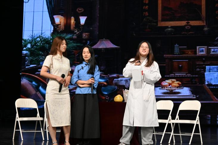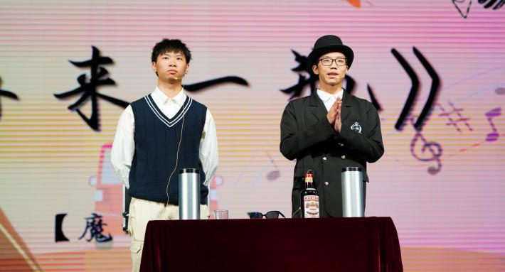 朗诵节目《诗意中国》带领观众们品味五千年文化,三千年诗韵;魔术表演《再来一瓶》通过幽默诙谐的表演为现场带来欢笑与惊喜;2023级辅导员刘新星与年级骨干共同演绎话剧《小姐和我》,幽默风趣的语言配合丰富的肢体动作,使得现场欢笑连连。
