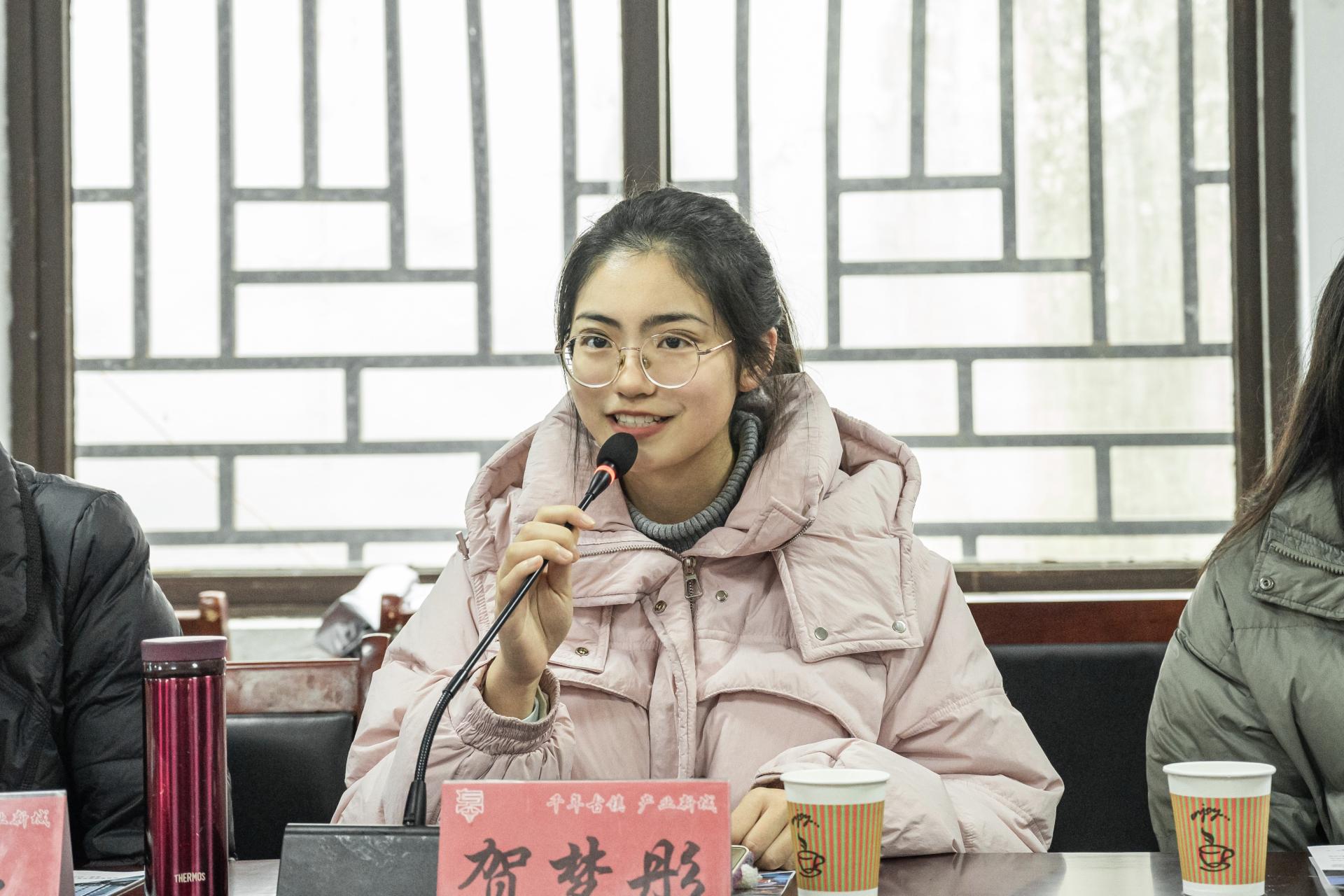 2023级贺梦彤同学则分享了参加“菁英归巢 青创未来”青年学子家乡行的经历。她在青年大学生恳谈会上对产业发展、家乡建设建言献策,发言作为优秀发言登上安徽网和中国青年报客户端。
